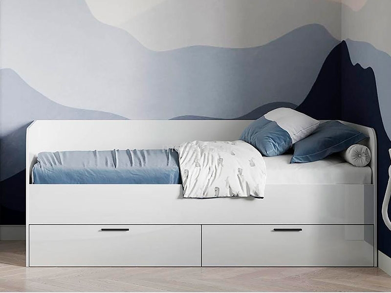 Кровать односпальная 90х200 см с каркасом и шухлядами Хепи MiroMark ДСП Белый Глянец / Белый