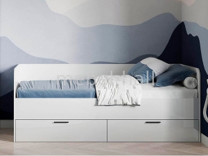 Размер спального места 90 х 200 см с выдвижными снизу шухлядами на телескопических направляющих.
