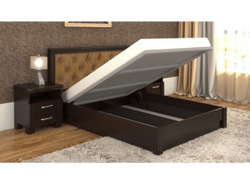 Деревянная односпальная кровать с подъемным механизмом и мягким изголовьем Маргарита DA-KAS