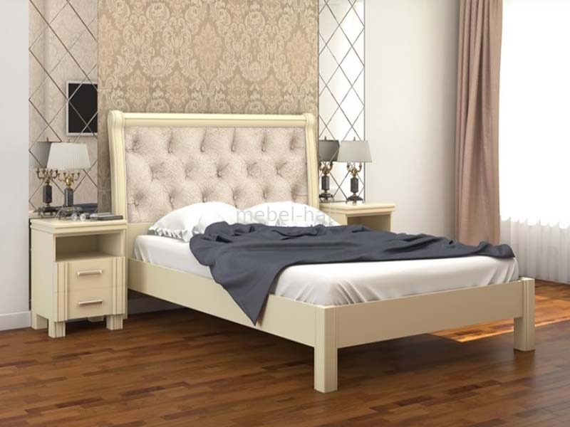 Каркас кровати изготовлен из ДСП. Спинки изготовлены из ламинированного ДСП, обрамлённые деревянными элементами из хвойных пород дерева, обработанные антисептическими грунтами и окрашены высококачественными лакокрасочными материалами (ТМ «Тиккурила», Финляндия).