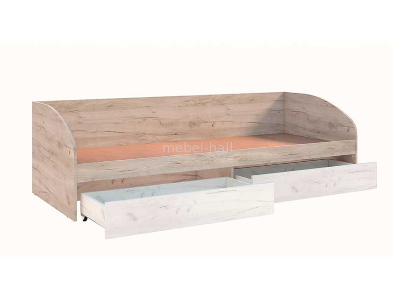 Кровать односпальная с 2-мя ящиками 800 х 200 см Брайт Мастер Форм 835х2032х600h мм ДСП Дуб Крафт Белый / Дуб Крафт Серый