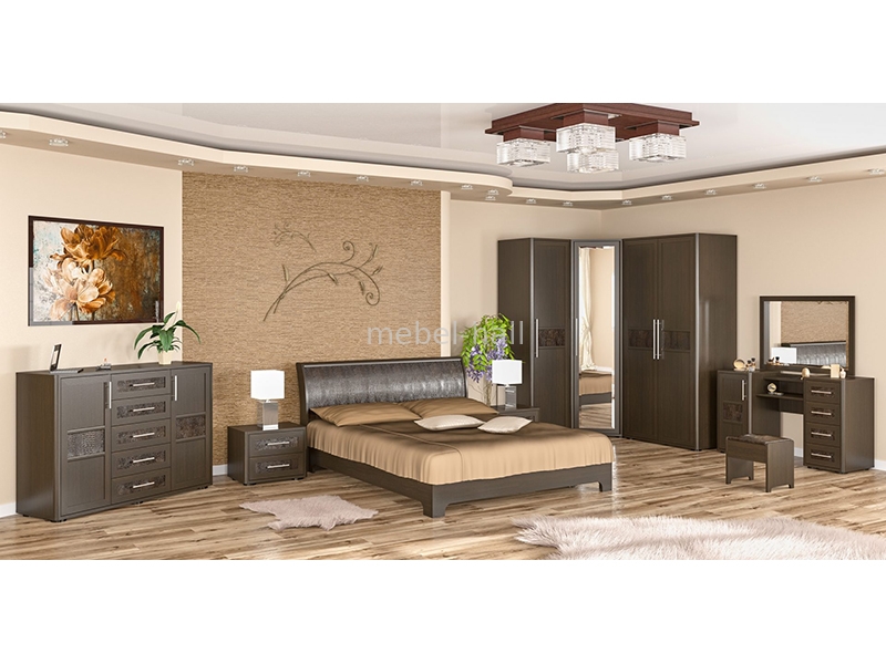 Кровать входит в комплект Спальни Токио Мебель Сервис Венге, каждый элемент этой спальни Вы можете подобрать отдельно.