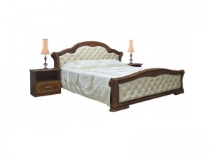 Изголовье и изножье: ламинированное ДСП в цвете Пино Орех Лак + Декоративная Резьба + Микрофибра.