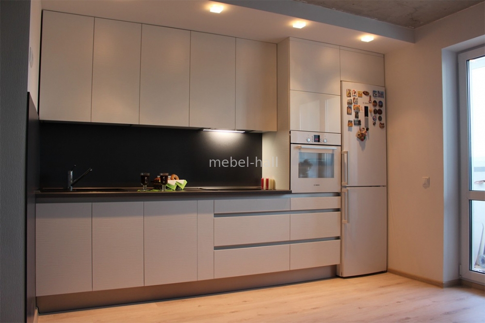 Прямая кухня от 13000 грн метр. (матовые крашенные фасады) до 20000 грн (глянец и фурнитура BLUM);