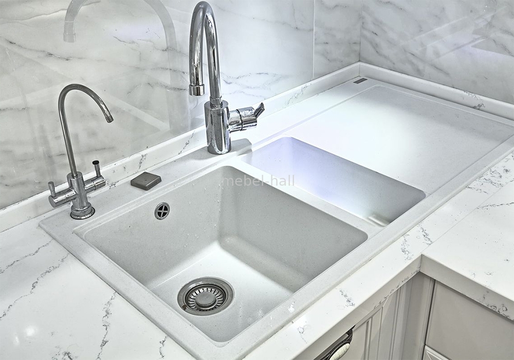 -Если использовать в качестве столешницы искусственный камень, плюс 5000 - 15000 гривен за метр погонный.