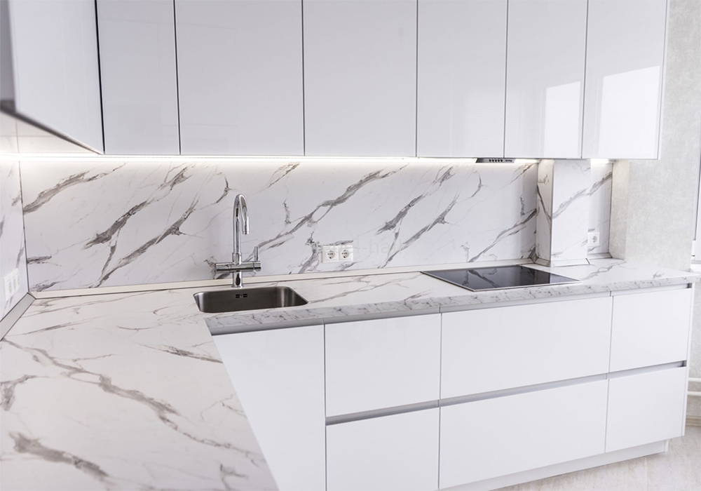 Если использовать в качестве столешницы искусственный камень, плюс 5000- 15000 гривен за метр погонный.