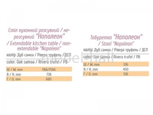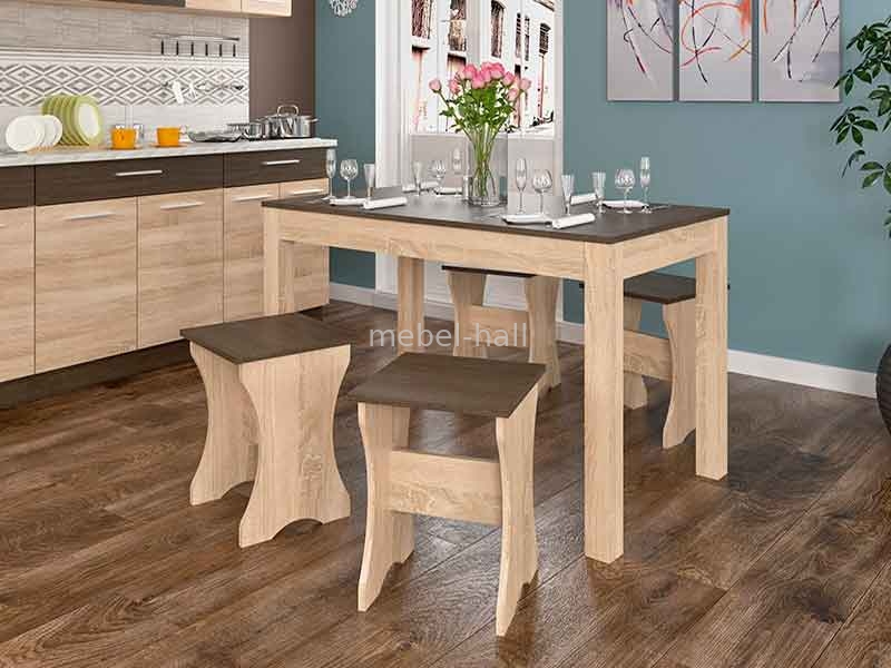 Набор мебели для кухни стол и четыре табурета модель Наполеон ДСП Ривьера Трюфель ножки Бук