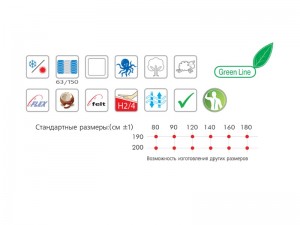 | Размер матраса, см: | 180х200, 180х190, 160х200, 160х190, 140х200, 140х190, 120х200, 120х190, 90х200, 90х190, 80х200, 80х190 |