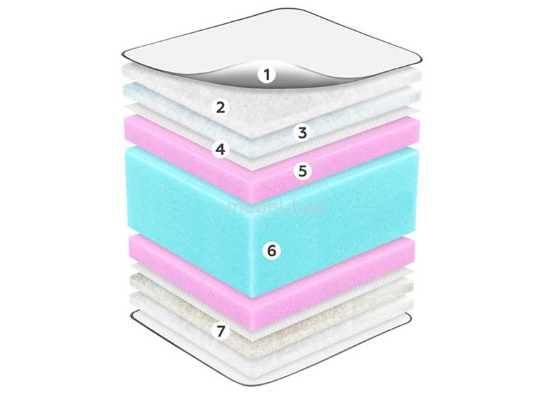 - Синтепон в составе чехла. Это нетканый материал, который создается из смеси различных полиэфирных волокон, скрепленных термическим или иглопробивным способом. Именно благодаря разрыхленному силиконизированному волокну матрас получается мягким, объемным, легким и очень удобным в использовании, а также улучшается циркуляция воздуха в чехле матраса.