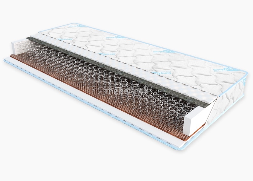 - кокосовая плита Politex. Выполнена из гипоаллергенных кокосовых волокон с добавлением полиэстерового армирования. Улучшает циркуляцию воздуха внутри матраса Cлип энд Флай и повышает жесткость летней стороны;