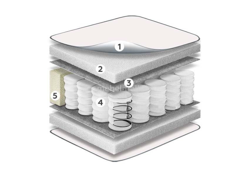 - Спанбонд - нетканый материал, который выполняет защитную функцию в составе изделия. Надежно защищает слои матраса от преждевременного износа.