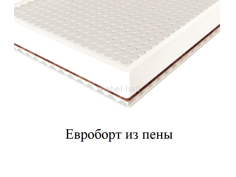 6. Евроборт из пены высокой плотности, установленный по периметру пружинного блока. Он предназначен для дополнительного усиления краев матраса и предупреждения их деформации. Благодаря применению евроборта вдвое увеличивается прочность и жесткость по периметру изделия, поддерживается его правильная форма. Это продлевает срок использования матраса и гарантирует его качественную эксплуатацию в течение 10 лет.