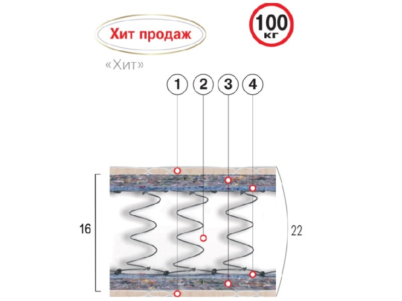 Матрас ХИТ Велам пружинный блок 100 кг