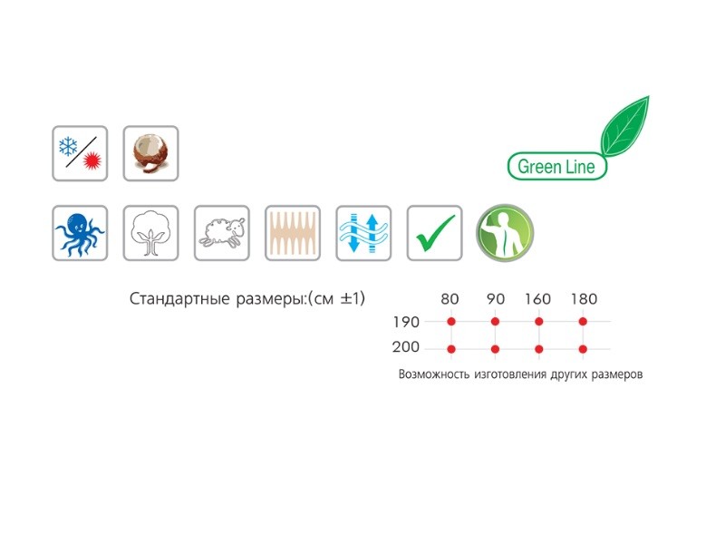 | Размер матраса, см: | 180х200, 180х190, 90х200, 90х190, 80х200, 80х190 |