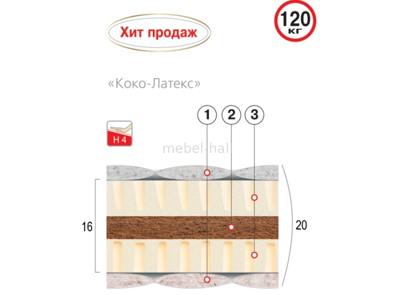Матрас Коко-Латекс Велам беспружинный латекс 130 кг