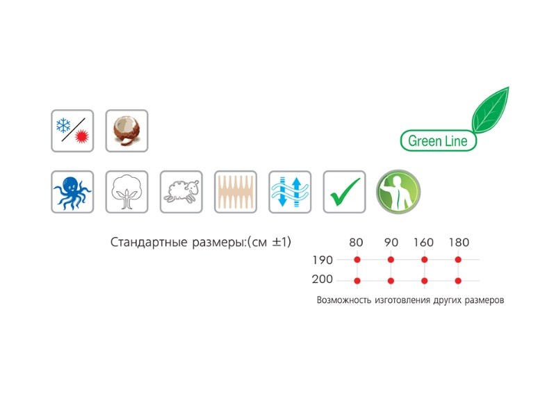 | Размер матраса, см: | 180х200, 180х190, 160х200, 160х190, 90х200, 90х190, 80х200, 80х190 |