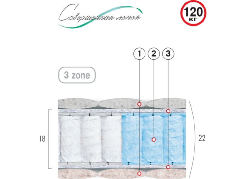 Матрас Коралл Велам независимые пружины 3 зоны 120кг