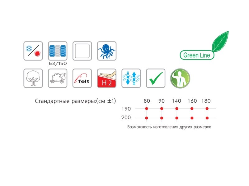 | Размер матраса, см: | 180х200, 180х190, 160х200, 160х190, 140х200, 90х200, 90х190, 80х200, 80х190 |