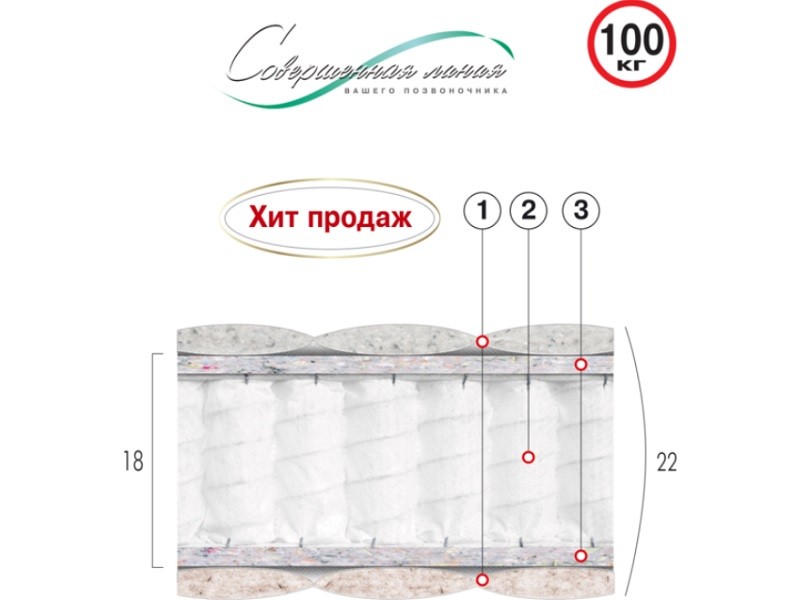 - Независимый пружинный блок Pocket Spring (диаметр опорного витка пружины - 63 мм, высота пружины - 150 мм; плотность от 250 шт/мІ) (4)