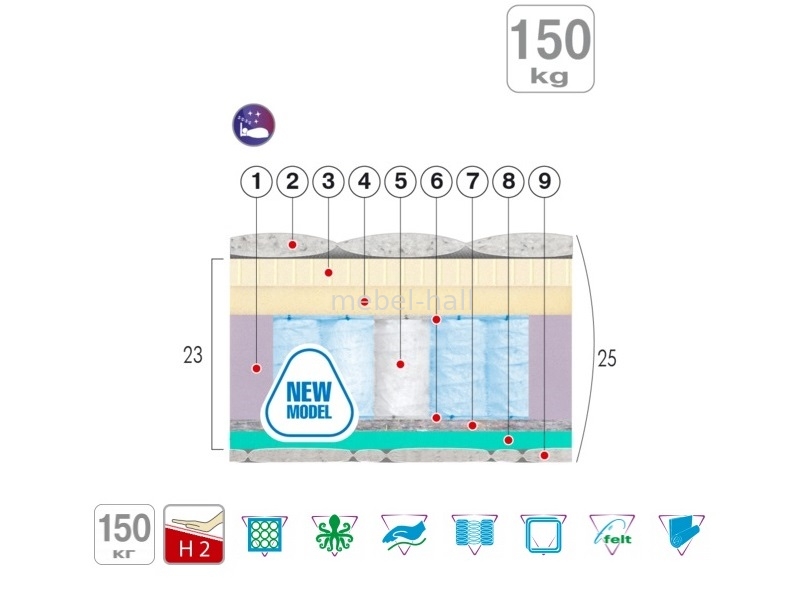| Материалы: | Пена Foam, Пена Memory Foam, Латекс, Нетканный материал Sprut , Нетканный материал Thermofelt |