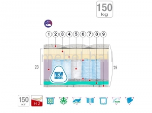 Матрас для ценителей повышенного комфорта и индивидуального дизайна. Основа - система независимых пружин с девятью зонами упругости 9 ZB (9 Zonal Base). За уровень комфорта отвечает система DynamicPro и трикотаж повышенной плотности. Нежный слой пены «Memory Foam» служит для адаптации поверхности к телу спящего человека. Верхний слой из латекса создает необходимую эластичность поверхности. Model L - это действительно премиальный комфорт.