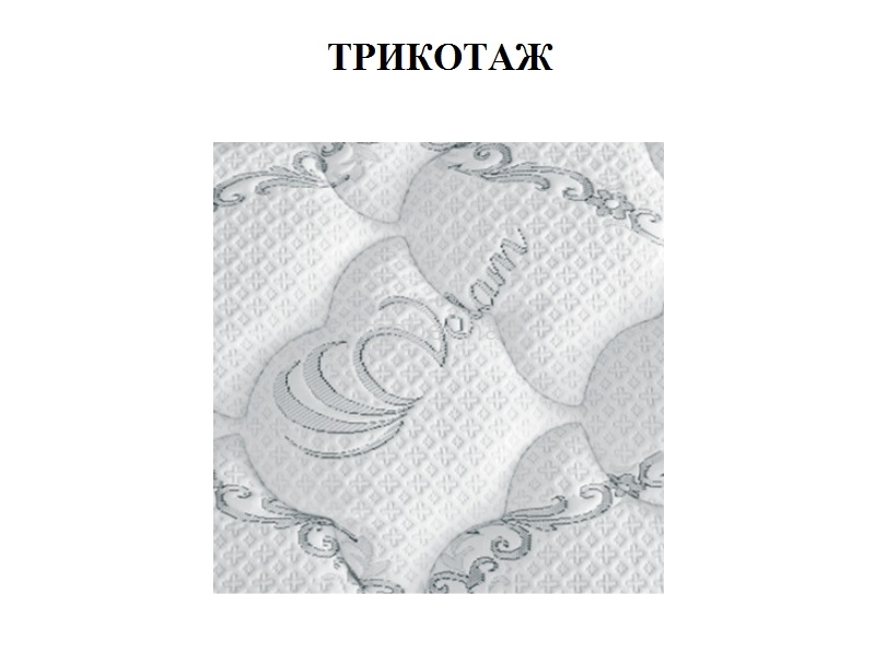 1. Трикотаж - вязаное полотно, полученное сплетением петель из одной или нескольких нитей на трикотажных машинах. Современные легкие и надежные синтетические материалы из полиэфирных нитей, используемые в трикотаже, придают матрацу мягкость, пышность и эффект взбитой перины. Трикотажные чехлы износостойкие и не создают пыли.