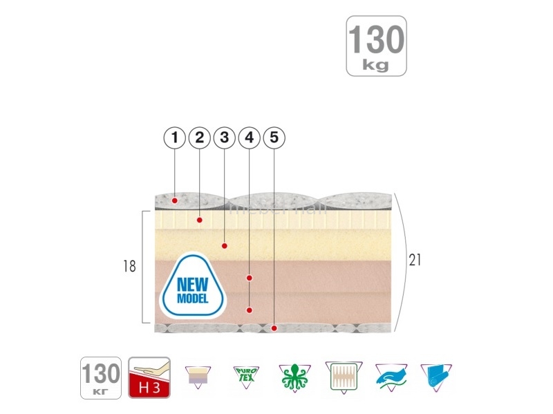 | Материалы: | Пена Foam, Пена Memory Foam, Латекс, Нетканный материал Sprut |