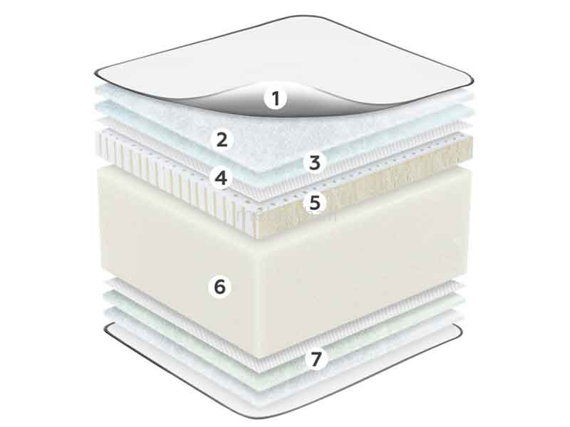 - Комфортная пенаэластичный, вспененный, гипоаллергенный материал, обладающий высокой воздухопроницаемостью и гигроскопичностью. Материал гибок и обладает отличными ортопедическими свойствами. Именно эта пена создает эффект легкости спального места, который многие ценят в матрасах. Матрасы, созданные из него, могут принимать форму тела, создавая чувство комфорта и почти невесомости. При использовании изделий с таким материалом не нарушается кровообращение, разгружающее сердечную мышцу. Способствует правильному распределению нагрузки во время сна.