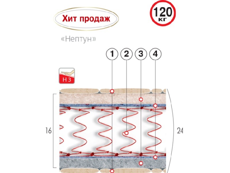 «НЕПТУН». Матрас - усовершенствованная классика. Комплектация модели отличается от классической применением усиленного пружинного блока. Гарантия восприятия повышенных нагрузок (120 кг), качественный хлопковый жаккард чехла и присутствие эффекта «Зима-Лето» - особенности надежного матраса.