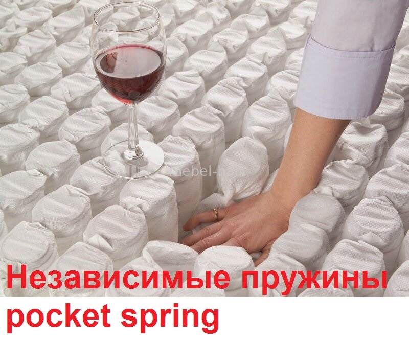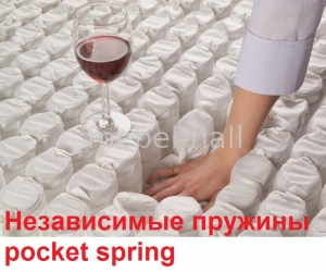- Независимый пружинный блок Pocket Spring разной упругости блок независимых пружин, в котором каждая пружина помещена в отдельный мешочек и прогибается независимо от остальных. Такая структура позволяет равномерно распределять давление на туловище человека и точечно поддерживать позвоночник в анатомически правильном положении. Это создает ярко выраженный ортопедический эффект и гарантирует здоровый и комфортный сон. Для создания различных зон упругости или целых блоков повышенной жесткости применяется проволока различной толщины (диаметра), используются пружины разных диаметров. Чем меньше диаметр пружины, (чем она тоньше), тем больше проявляется эластичность блока пружин.