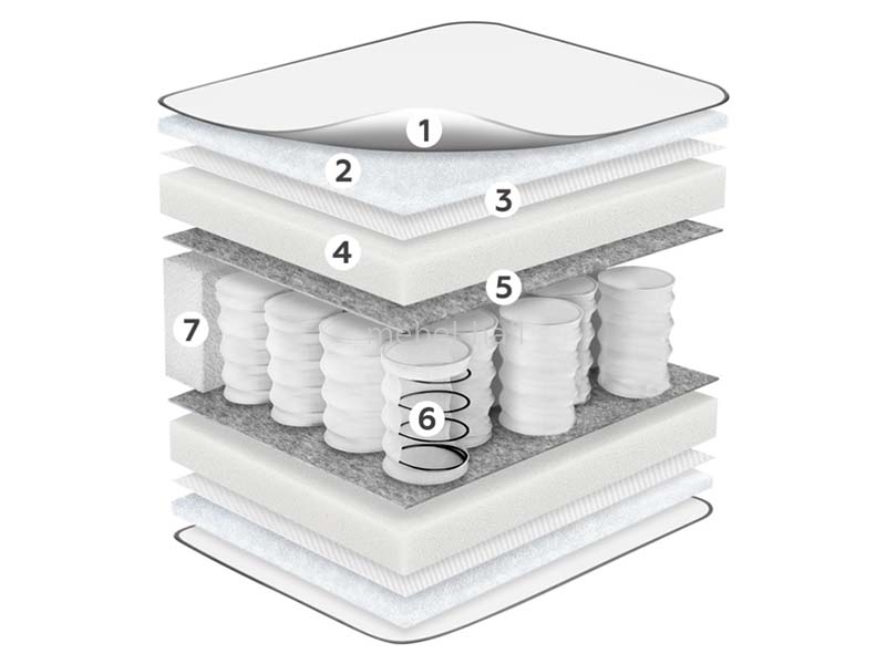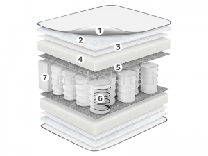 - Евроборт из пены по периметру. Борт из пены высокой плотности, установленный по периметру пружинного блока. Он предназначен для дополнительного усиления краев матраса и предупреждения их деформации. Благодаря применению евроборта вдвое увеличивается прочность и жесткость по периметру изделия, поддерживается его правильная форма. Это продлевает срок эксплуатации матраса.