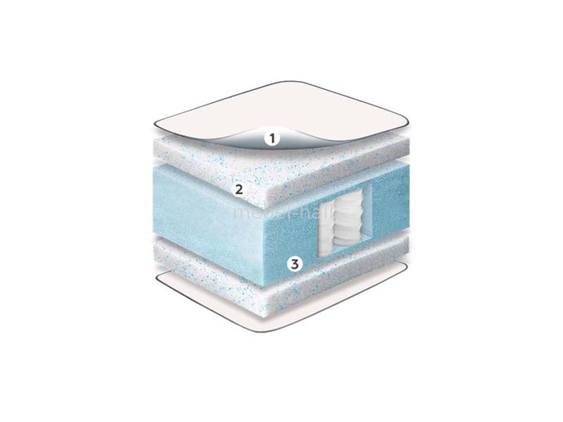 Пена с гранулами термогеля Granolo - Гранулы в пене обеспечивают сразу несколько эффектов. Во-первых, они создают условную «сетку жесткости» внутри мягкой пены, увеличивая ее упругость, повышая устойчивость к деформации и ускоряя восстановление формы после эксплуатации матраса. Во-вторых, гранулы геля не препятствуют прохождению воздуха через пену, сохраняя при этом терморегуляционные свойства геля. Гранулы геля не только охлаждают, но поддерживают комфортный температурный режим.