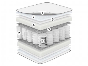 - Пружинная система "Pocket Spring". Блок независимых пружин, в котором каждая пружина помещена в отдельный мешочек и прогибается независимо от других. Такая структура позволяет равномерно распределять давление на туловище и точечно поддерживать позвоночник в анатомически правильном положении. Это создает ярко выраженный ортопедический эффект и гарантирует здоровый и комфортный сон.
