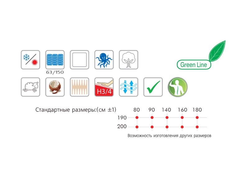 | Размер матраса, см: | 180х200, 180х190, 160х200, 160х190, 140х200, 140х190, 90х200, 90х190, 80х200, 80х190 |