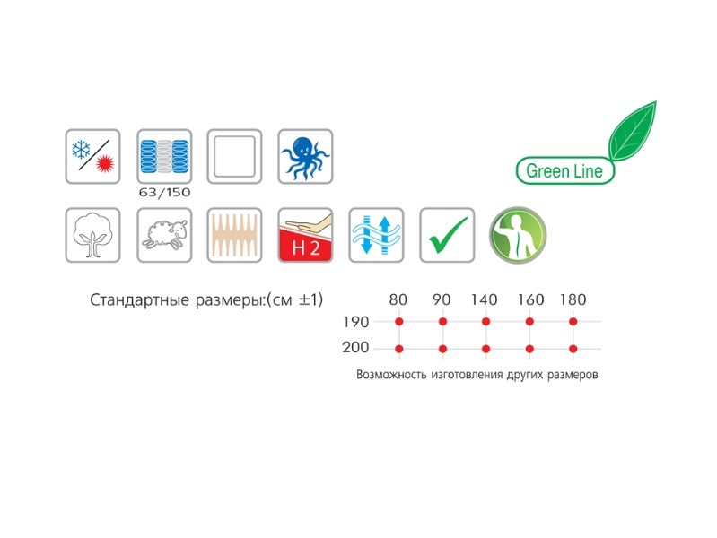 | Размер матраса, см: | 180х200, 180х190, 160х200, 160х190, 140х200, 140х190, 90х200, 90х190, 80х200, 80х190 |