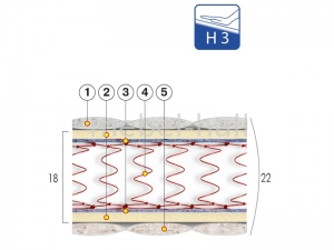 4. Усиленный пружинный блок "Strengthened Bonnell". Для создания усиленной пружины, применяется пружина меньшего диаметра Ш - 80мм, (обычный диаметр пружины Ш - 90мм.) Таким образом достигается супер-Плотность пружин на кв.м - от 130шт.