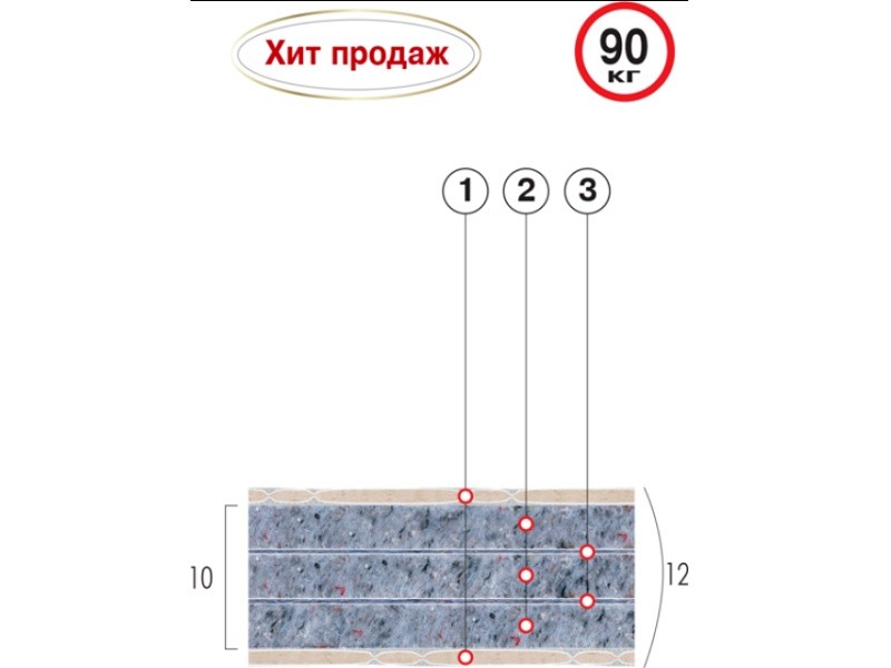 3. Thermofelt - настилочный материал, продукт термического соединения волокон и неотъемлемый элемент качественного матраца. Назначение - распределение нагрузки и создание стабильной защиты мягких настилов от металлической структуры пружинного блока. Подбор состава волокон и плотностей материалов позволяет моделировать определенные свойства моделей матрацев, нивелируя или усиливая их уровень жесткости и эластичность.