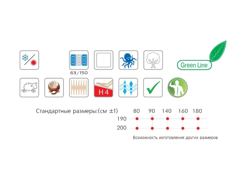 | Размер матраса, см: | 180х200, 180х190, 160х200, 160х190, 140х200, 140х190, 90х200, 90х190, 80х200, 80х190 |