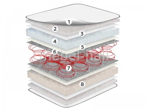 1. Чехол жаккард - тип тканевого полотна, с переплетением нитей, произведенного промышленным способом. Особое переплетение перекручивающихся нитей дает высокую плотность полотна, за счет чего обеспечивается длительный срок службы матраса.