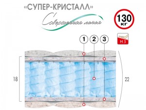 «СУПЕР - КРИСТАЛЛ». Матрас повышенной жесткости - на основе пружинного блока из усиленных независимых пружин «Pocket Spring» Отличие модели от популярного классического матраса «Супер-Кристалл» - применение жесткой основы, что создает абсолютно иное восприятие поверхности, сочетающей мягкость стеганого покрытия и упругих пружин.