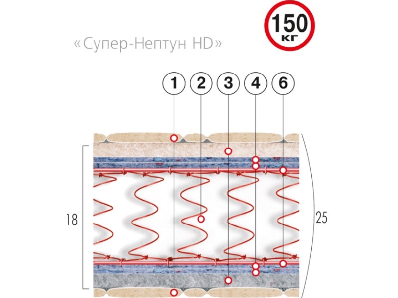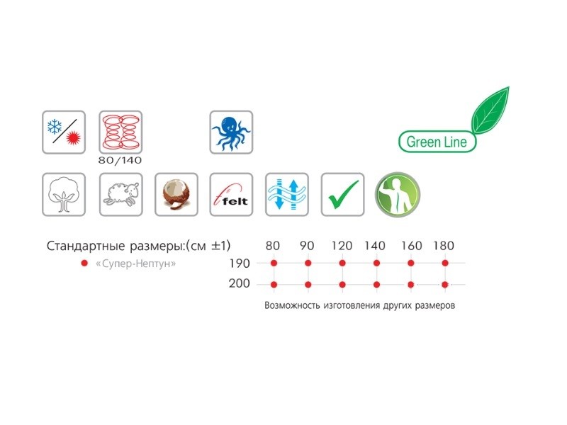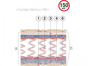 СУПЕР-НЕПТУН HD решает проблему людей, чей спокойный отдых требует еще большего внимания (до 150 кг). Усиленный пружинный блок «Bonnell», классический набор оптимальных по качеству настилочных материалов и, непременно, присутствие эффекта «Зима-Лето». Съемный чехол. Спокойный сон - привилегия тех, кто использует надежные матрасы.