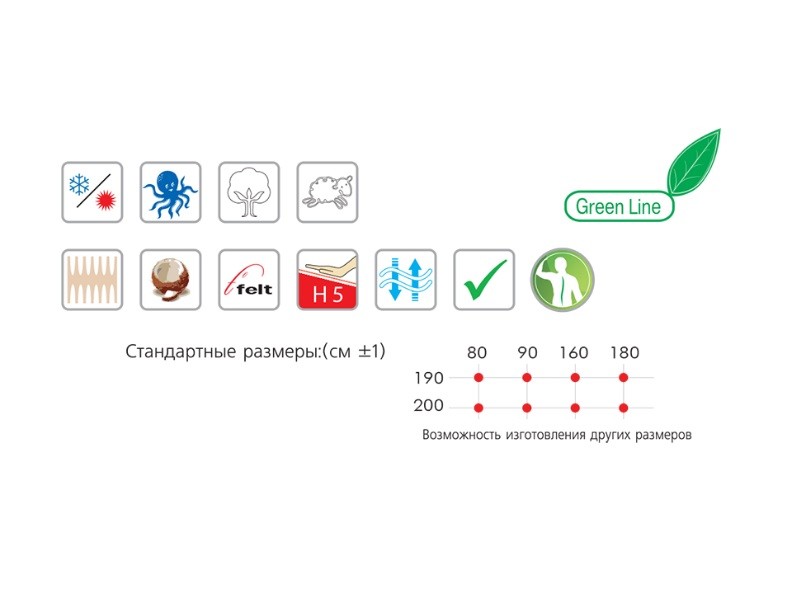 | Размер матраса, см: | 180х200, 180х190, 160х200, 160х190, 90х200, 90х190, 80х200, 80х190 |