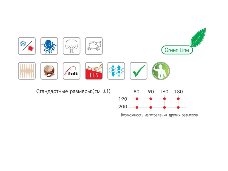 | Размер матраса, см: | 180х200, 180х190, 160х200, 160х190, 90х200, 90х190, 80х200, 80х190 |