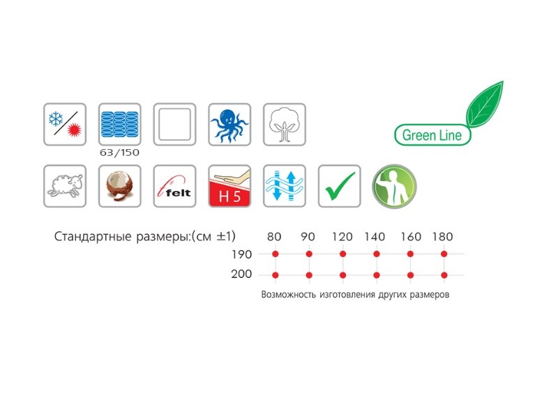 | Размер матраса, см: | 180х200, 180х190, 160х200, 160х190, 140х200, 140х190, 90х200, 90х190, 80х200, 80х190 |