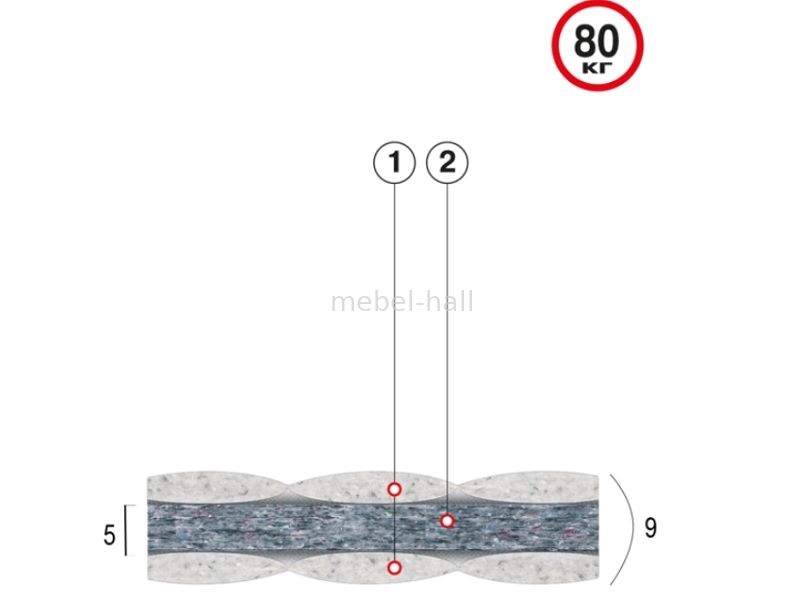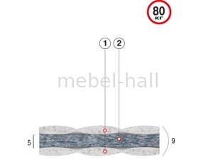 2. Thermoflex - нетканый материал из смеси восстановленных и ПЭТ волокон. Упругая объемная структура из уплотненных горизонтальных слоев волокон, сочетает одновременно стабильность и эластичность поверхности, увеличивает высоту матраца и, одновременно, распределяет нагрузку.