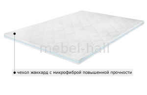 - Чехол матраса - ткань жаккард с содержанием волокон микрофибры, которые придают поверхности мягкость. А особое переплетение ткани с добавлением эластичных волокон хорошо пропускает воздух и делает чехол крепким, износостойким и гарантирует долгий срок службы.