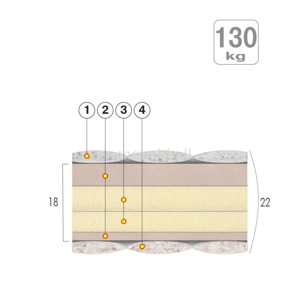 3. Ортопедическая пена - нетоксичный, долговечный и гипоаллергенный материал. Благодаря структурным особенностям ортопедическая пена способствует правильному распределению давления на различные участки тела, снимает напряжение с сосудов и улучшает кровообращение во время сна. Высокий уровень плотности материала улучшает ортопедические свойства матраса.