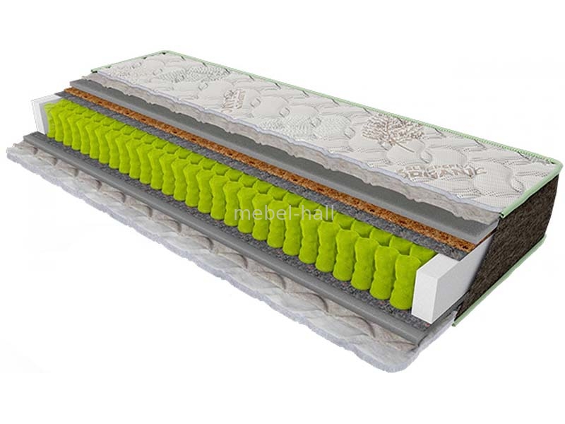 - Чехол Organic Cotton - качественная ткань простеганная материалом Bio Fiber на основе льна, позволяющая воздуху естественным образом циркулировать внутри матраса, защищая его от скопления влаги и неприятных запахов. Создаёт оптимальный микроклимат, позволяя коже "дышать". Не электризуется. Выдерживает высокую нагрузку и имеет отличную износоустойчивость.