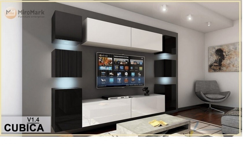 Мебельная стенка Кубика Cubika V1.4 MiroMark черный белый глянец без подсветки