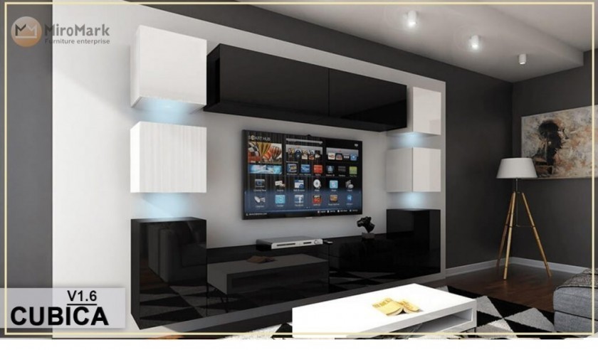 Мебельная стенка Кубика Cubika V1.7 MiroMark черный белый глянец без подсветки